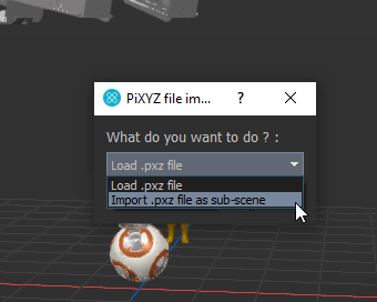 - For *.pxz file, you need to choose "Import as sub-scene- when asking.