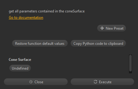 get all parameters contained in the coneSurface